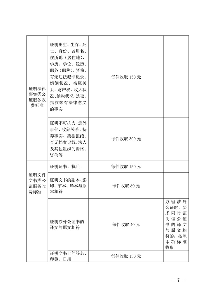 第七條 公證機(jī)構(gòu)辦理下列公證事項(xiàng)和事務(wù)的收費(fèi)實(shí)行政府定價(jià)。
